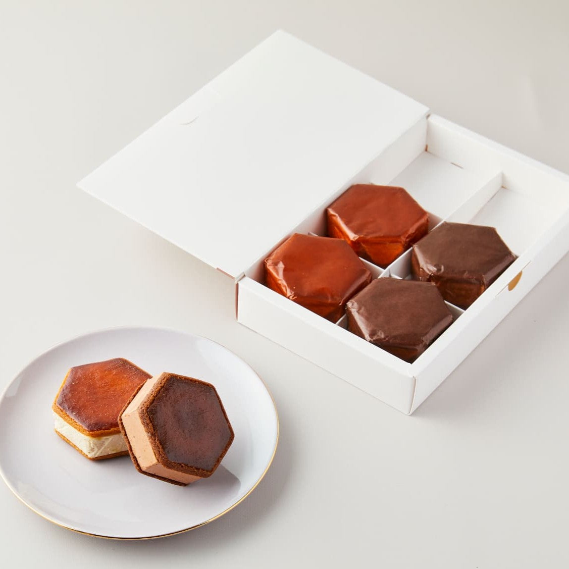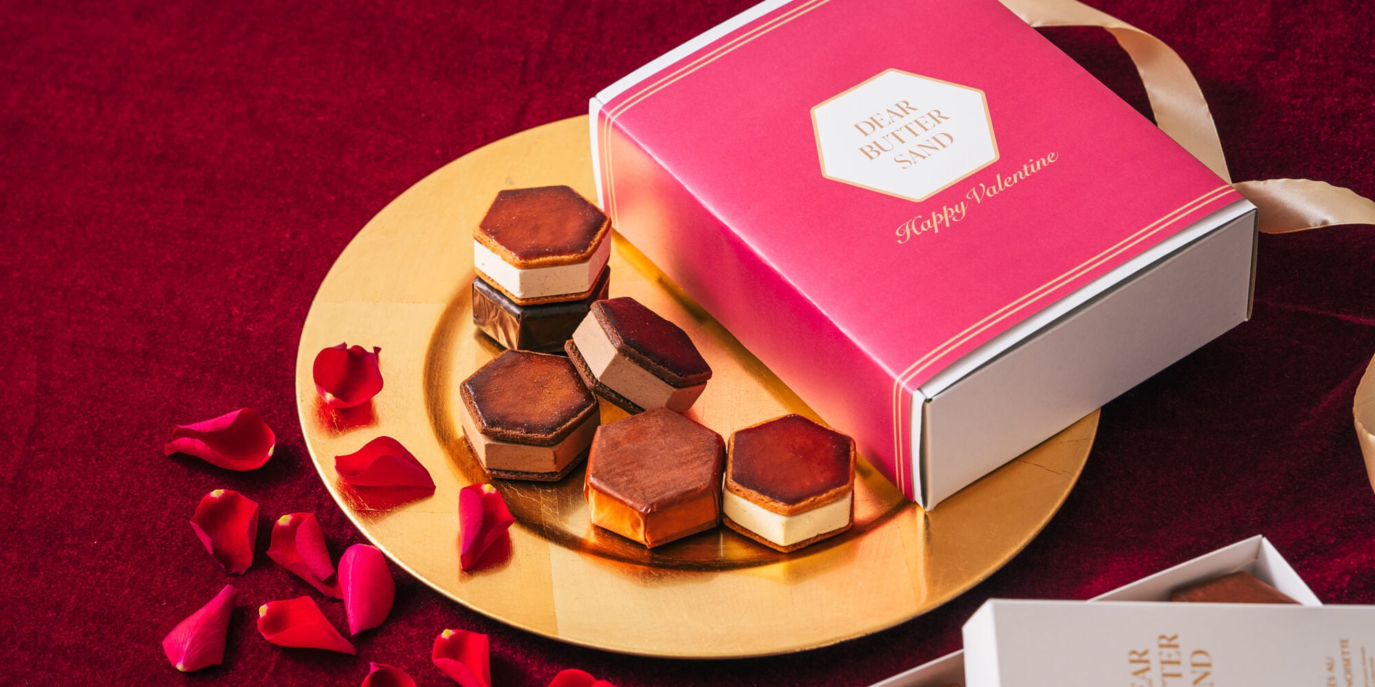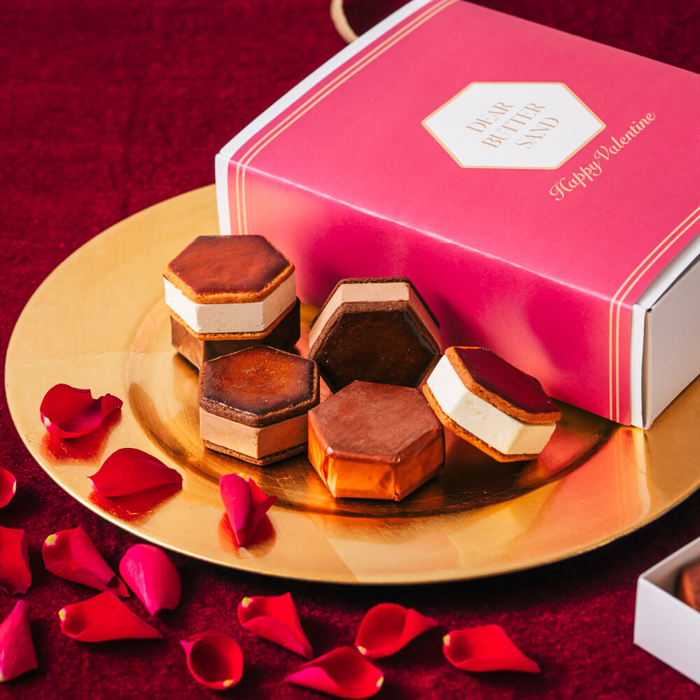 “親愛”という意味を持つ六角形の形状は、想いを伝えるバレンタインデーのギフトにぴったり。また、6個入に用いられているブック型のパッケージには“贈る方と贈られた方の新たな物語がこのスイーツからはじまっていく・・”という想いも込められています。ゴールドの光沢のあるロゴも印字され、洗練されたラグジュアリーなギフトの印象を与えます。