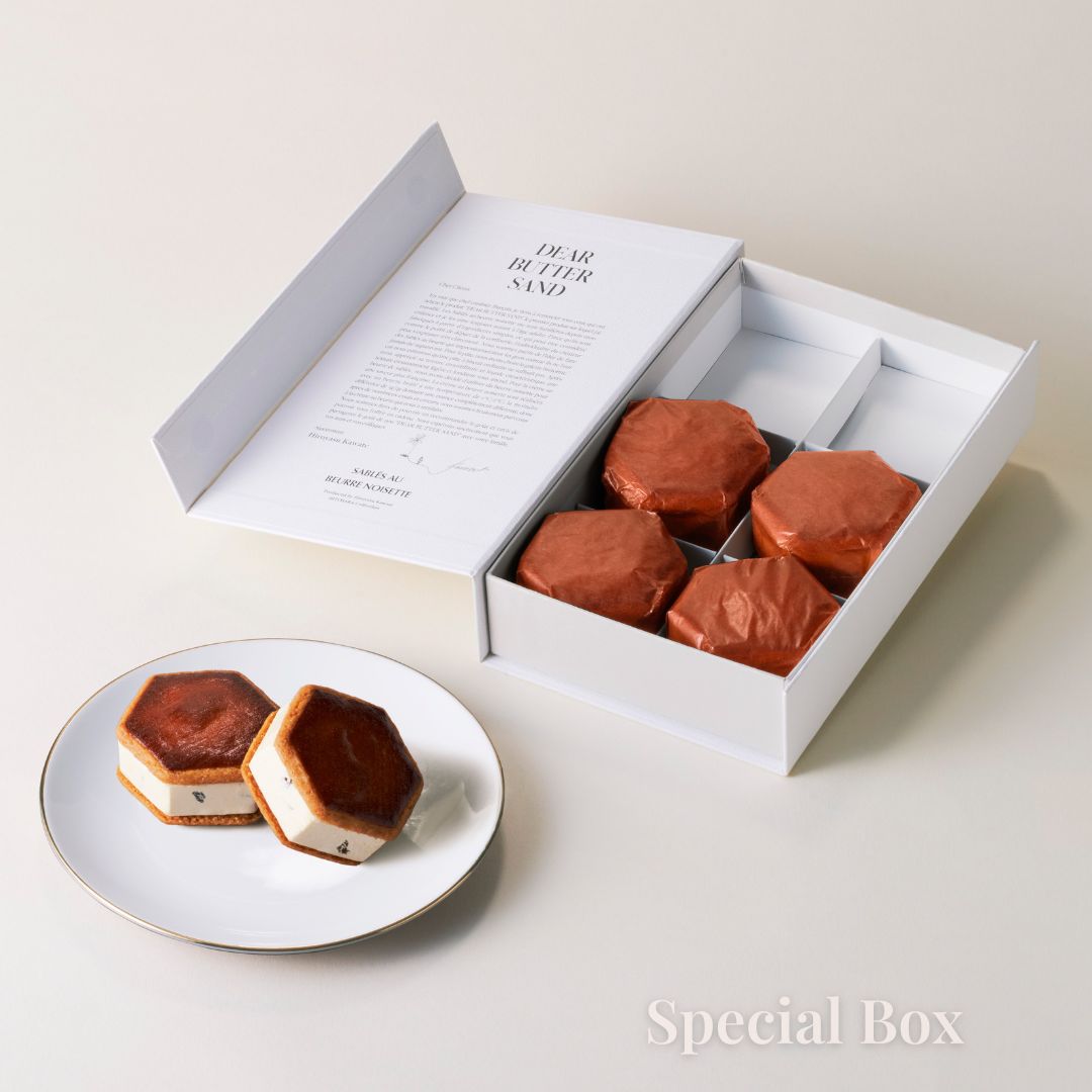 発売から瞬く間に数千個を完売した、幸せの焦がしバターサンド。美食家や有名人をはじめ、多くの嬉しいお声を頂いています。